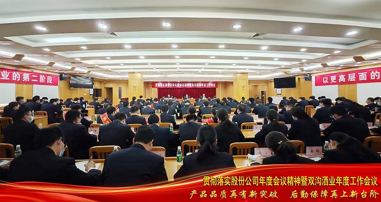 揚帆啟航新征程,踏浪前行向未來。2月21日上午8點18分,公司在辦公樓西二樓會議室召開貫徹落實股份公司年度會議精神暨雙溝酒業(yè)年度工作會議。股份公司副總裁、公司黨委書記、總經理李玉領對股份公司年度會議精神進行宣貫落實,并全面部署雙溝酒業(yè)2023年工作,公司黨委副書記耿忠祥總結回顧2022年工作成績,公司副總經理崔鳳元主持會議,各部門、車間及派駐機構中層助理以上人員、班科長代表和受表彰的單位、員工代表參加會議。